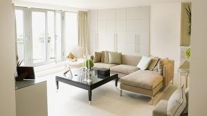 Комната с приятными оттенками синего и красивая ванная комната помогут Вам расслабиться после трудового дня...
